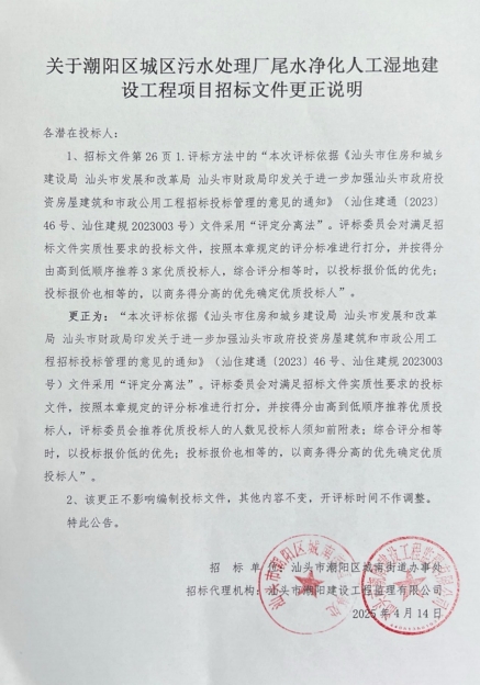 潮陽區(qū)城區(qū)污水處理廠尾水凈化人工濕地建設(shè)工程項目