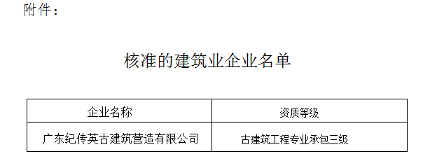 根據(jù)《中華人民共和國行政許可法》、《中華人民共和國建筑法》和有關(guān)建設(shè)工程企業(yè)資質(zhì)管理規(guī)定,現(xiàn)將經(jīng)我局審查核準(zhǔn)的建筑業(yè)企業(yè)名單予以公布(見附件)。