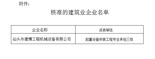 根據(jù)《中華人民共和國行政許可法》、《中華人民共和國建筑法》和有關(guān)建設(shè)工程企業(yè)資質(zhì)管理規(guī)定,現(xiàn)將經(jīng)我局審查核準的建筑業(yè)企業(yè)名單予以公布(見附件)。