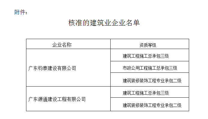 根據(jù)《中華人民共和國行政許可法》、《中華人民共和國建筑法》和有關(guān)建設(shè)工程企業(yè)資質(zhì)管理規(guī)定,現(xiàn)將經(jīng)我局審查核準(zhǔn)的建筑業(yè)企業(yè)名單予以公布(見附件)。