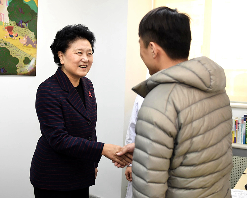 劉延?xùn)|考察了北京市朝陽(yáng)區(qū)疾病預(yù)防控制中心,到自愿咨詢(xún)檢測(cè)室看望前來(lái)咨詢(xún)的人員,慰問(wèn)一線工作人員,深入了解政策實(shí)施、疾病救治、宣傳教育和社會(huì)組織參與情況,并召開(kāi)醫(yī)學(xué)專(zhuān)家、基層防治人員、志愿者、社會(huì)組織和國(guó)際組織代表等參加的座談會(huì),聽(tīng)取意見(jiàn)建議。她指出,以習(xí)近平同志為核心的黨中央高度重視人民群眾健康。黨的十八大以來(lái),在各方共同努力下,艾滋病防治工作取得顯著成績(jī),受艾滋病影響人群生活質(zhì)量不斷提高,基本實(shí)現(xiàn)了“十二五”防治目標(biāo)。
