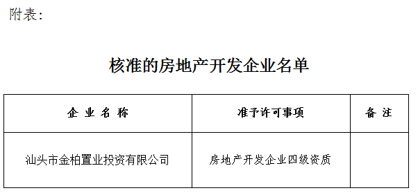 關(guān)于房地產(chǎn)開發(fā)企業(yè)資質(zhì)核準(zhǔn)結(jié)果的公告 汕住建公告〔2018〕9號(hào)