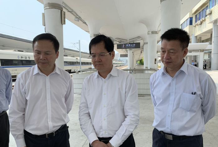 徐少華一行在市領導鄭通聲、李耿堅陪同下,實地察看了汕頭火車站站臺改造情況,詳細了解聯絡線項目運行和汕汕鐵路及汕頭段規(guī)劃建設情況。面對汕頭經濟社會發(fā)展對鐵路交通網絡建設的迫切需求,在聯絡線建設期間,時任廣東省常務副省長的徐少華十分關心汕頭鐵路建設,多次親自協(xié)調推動聯絡線項目建設,實現汕頭人民祈盼動車入城的夢想,為汕頭打造高水平的全國性綜合交通樞紐奠定堅實基礎。